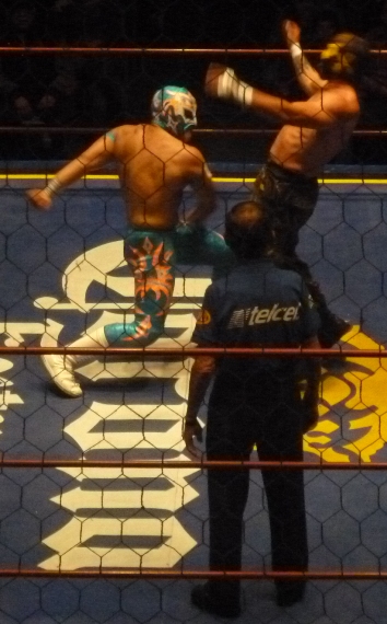 Jaguar y Espíritu someten a Asturiano y Tiger para que Akron los fulmine con patadas en cascada, Lestat entra al relevo y de nueva cuenta los rudos lo someten pero en esta ocasión Akron se proyecta sobre sus compañeros, Tiger sienta a Akron en el filo del ring para que Asturiano lo saque con patadas al pecho.